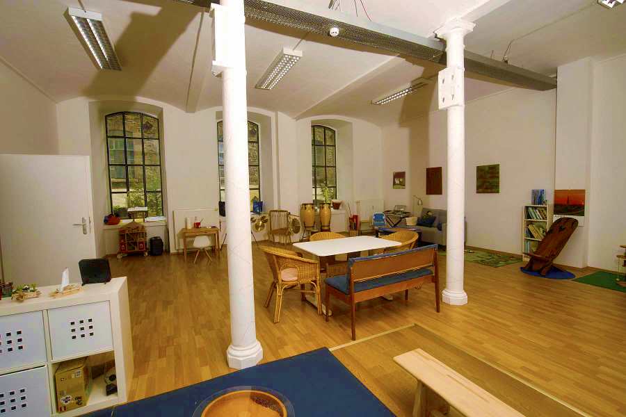 Seit 2020 befindet sich die Praxis in der ehemaligen Tuchfabrik „Schürmann & Schröder“ in Radevormwald Vogelsmühle. Das ehemalige Industriegelände wurde zu einem Wohn- und Geschäftszentrum umgebaut. In der näheren Umgebung sind Grün- und Waldanlagen, die zur Betätigung genutzt werden können. Die Praxis ist mit einem Aufzug barrierefrei zu erreichen. Das alte Fabrikgebäude bietet hohe Räumlichkeiten, durch deren tragende Säulen der 70qm² große Raum optisch zwischen Bewegungs- Konzentrations- und Ruhebereich getrennt wird. Der bewusst reizarm gehaltene Raum bietet Möglichkeiten für Heilpädagogisches Spiel, Musiktherapeutische Behandlung und lässt die individuelle Gestaltung für den einzelnen Klienten zu. Der große Vorraum (70qm²) bietet Möglichkeiten für Lagerung von Materialien. Alle Räume auch die Sanitäranlage sind barrierefrei zu erreichen.